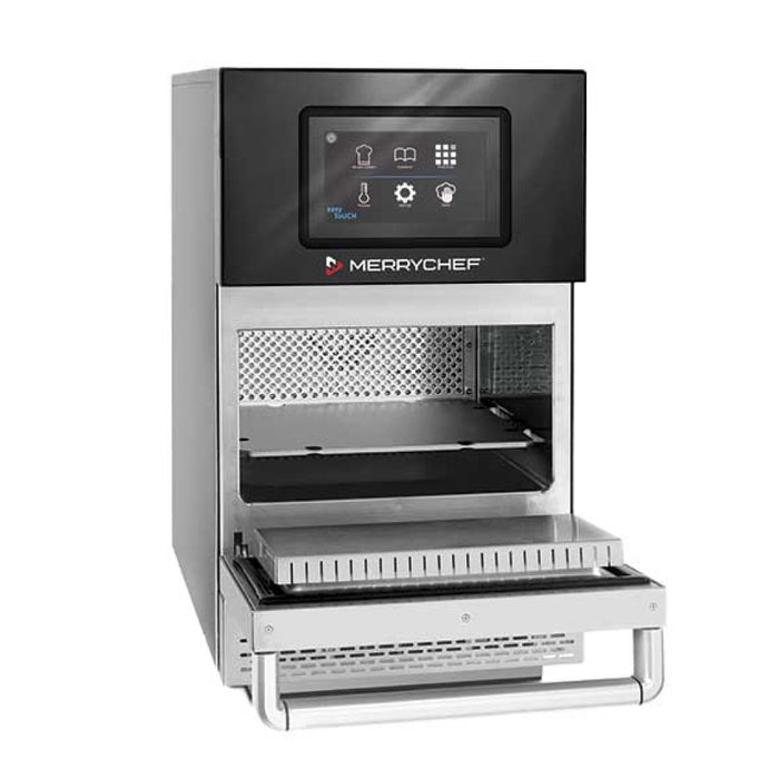 The MerryChef conneX12 14" Stainless-Steel Standard-Power High-Speed Technology Oven is a versatile piece of equipment for chefs, caterers, and restaurant owners. Designed with a sleek stainless steel exterior and a double wall insulated oven cavity, it combines microwave, convection, and impingement cooking options to create delicious and appealing meals.