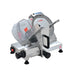 This Nella 0.2 hp 10" Blade Meat Slicer have anodized aluminum alloy bodies. The high carbon steel blades are hard chromed, with a hollow ground taper for extended sharpening and blade life.