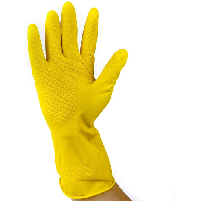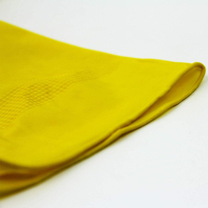 The Nella 11" Yellow Rubber Gloves are made of durable rubber that can be used for heavy-duty tasks. Their convenient design are perfect for household kitchen cleaning, dishwashing, strong work, medical, painting, or gardening food safe gloves.