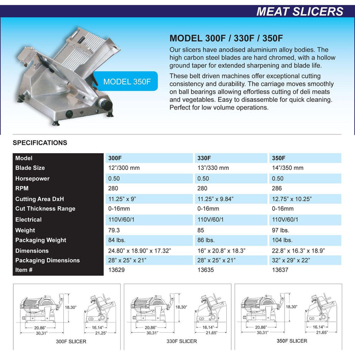 Nella 14" Manual Meat Slicer 0.5 hp - 13637