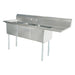 This three-tub sink is shipped with four 16-gauge galvanized steel legs that have been removed for ease of transport.