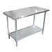 18 Gauge 430 Stainless Steel. Support Channels secured via bolt and acorn style nut. The Galvanized Under-shelf designed with welded V pipe leg supports. Legs secured by single set-screw design. Plastic Bullet Feet