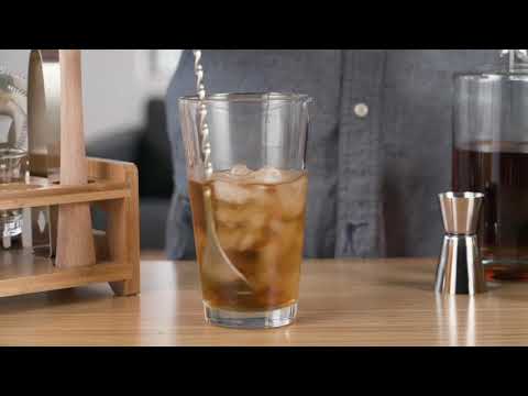 - Includes 20 pieces of barware: Boston Shaker Tin, Ice Tongs, Bar Spoon, Cocktail Strainer, .5 oz / 1 oz Jigger, Bottle Opener, Muddler, Measuring Mixing Glass, Liquor Pourers (4), Shot Glasses (4), Cocktail Picks (4), Bamboo Stand, 18 Cocktail Recipe Cards