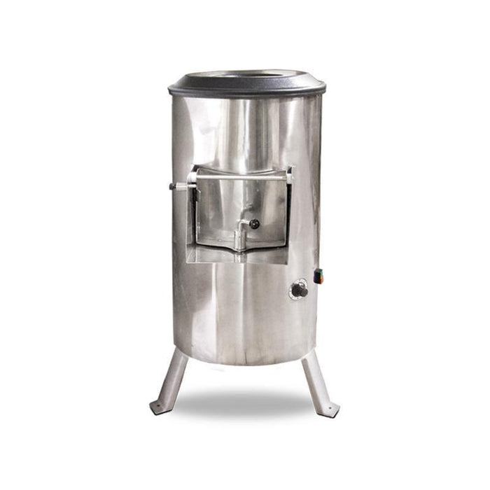 This heavy-duty stainless steel potato peeler boasts a powerful 1-HP motor enabling it to peel 1100 lbs. of potatoes per hour, approximately 18 lbs. of potatoes per minute! The swift peeling cycle minimizes the amount of product waste produced, giving you perfect peeled potatoes very quickly. The safety sensor stops automatically stops the cycle when the door is opened protecting your cooks and employees in a fast-paced kitchen. The potato peeler is constructed with stainless steel and the electrical components are within a sealed box making clean ups fast and easy.