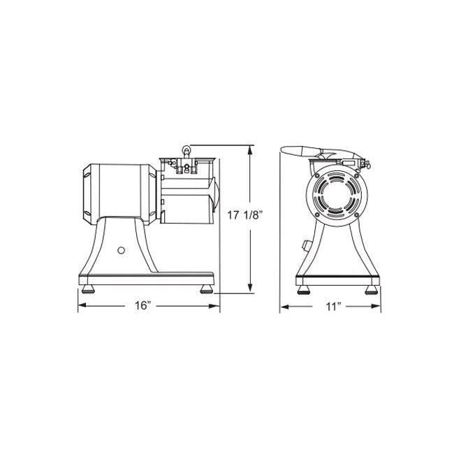 Made of aluminum alloy, this 0.75 horsepower light duty cheese grater is ideal for grating hard cheese in small to medium applications. This cheese grater has a 3 1/8” x 5 5/8” mouth and a 0.75 horsepower motor that provides 1440 RPM making any cheese grating job an easy task.