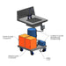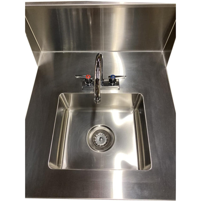 The hand sink comes with a 14” x 12” sink basin. The compact cart is fully equipped with a backsplash, as well as wheels that make it easy to move around as required.