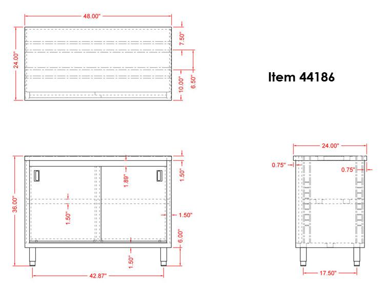 This work table features a spacious cabinet with sliding doors that can hold extra utensils, mixing bowls, cooking trays, and other essential tools and equipment. The cabinet’s rear, sides, bottom, and shelf are all made of 18-gauge 430 stainless steel for added durability.