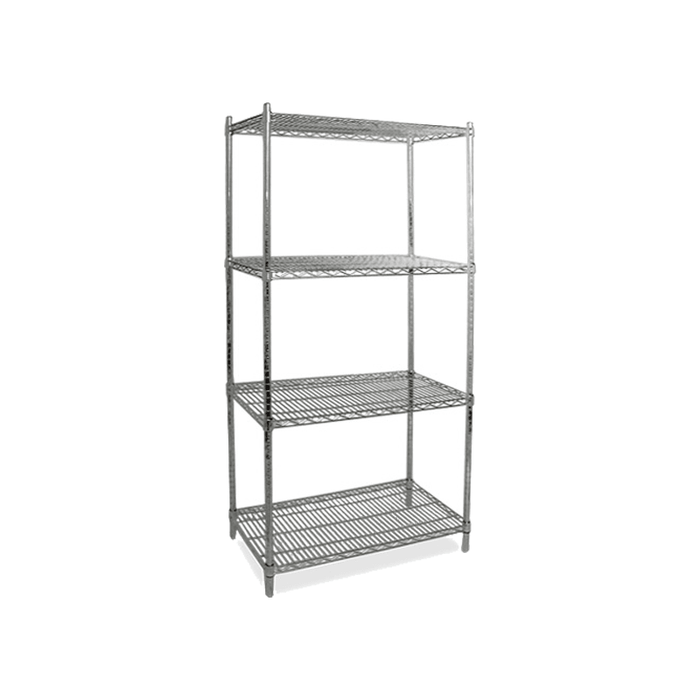 The open wire construction maximizes light and air circulation to keep items dry and well-ventilated. Each shelf has a surface area of 24" x 60" with a total of (4) shelves giving you a large space to work with and with a height of 72" you will have adequate height space per shelf.