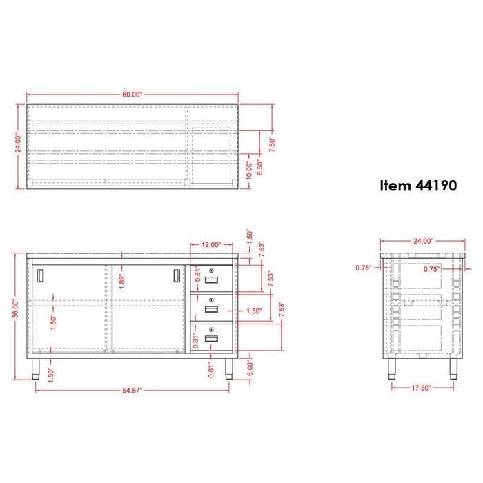 Nella 24” x 60” Stainless Steel Work Table with Cabinet, Drawers and Sliding Doors - 44190
