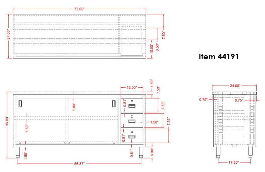 Nella 24” x 72” Stainless Steel Work Table with Cabinet, Drawers and Sliding Doors - 44191