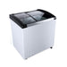 The transparent sliding glass door of the Nella 31" Ice Cream Display Chest Freezer 117 L - 47751 not only allows for easy viewing and access to your frozen treats but also helps to keep them visible to customers. This can increase impulse purchases and attract customers to your shop. The door also has a lock and key for added security, giving you peace of mind knowing that your valuable inventory is safe.