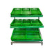 The Nella 49.50" 3-Tier Fruit & Veggie Display Stand with Crates is a solution designed to upgrade the presentation of fresh produce in any commercial setting. This produce stand offers an ideal platform to enhance the visibility and accessibility of products. Its sturdy construction emphasizes durability and elegance, suitable for grocery stores, marketplaces, and restaurant kitchens looking to optimize their produce display.