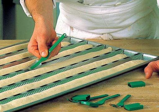 The patented Nella 5.5" 6-Pieces Bread Scorer - ALF3206 is sold by package of 6 – 1 of each in green, orange, yellow, white, light blue, and brown. It is quite simply the most effective, economical and effortless scoring solution for baking available. Pre-measured blade depth yields a perfect cut, avoid bulging, cracking, or exploding of the loaf during baking, ensures proper rising of dough.