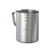 This frothing pitcher works great for creating specialty lattes and cappuccinos, featuring permanently embossed measurements in 6oz increments visible on the inside and outside and a hole above the handle to rest a thermometer. Doubles as a water pitcher or measuring cup.