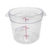 Its food-grade material ensures that it is safe for direct contact with food, providing peace of mind for chefs and consumers alike. Overall, the Nella 6 Qt. Polycarbonate Clear Round Food Storage Container - 80177 serves as an essential addition to any kitchen, offering durability, flexibility, and efficiency in food storage. This container supports a seamless kitchen operation with its practical design and high-performance features.