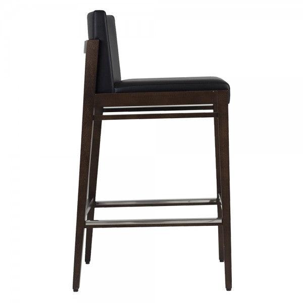 Add an elegant touch to your restaurant with this Nella Avenue Espresso Bar Stool. The chair's espresso vinyl seat combines with a straight solid backrest to not only provide excellent support, but also add a distinct aesthetic appeal to any restaurant, bar, or bistro.