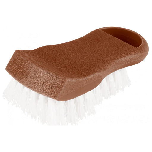 This Nella Brown Plastic Cutting Board Brush features ergonomic handles for comfortable gripping. Brushes are color coded for preventing cross contamination. Designed with a looped handle for convenient storage.