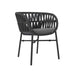 Crafted for durability and longevity, the Capri Bucket Arm Chair features a striking black all-weather rope weave for the back and arms, providing both visual appeal and resilience against the elements. The e-plated powder-coated frame ensures robust stability and resistance to rust, ideal for a diverse climate. Completing the comfort is a Textaline seat cushion, designed for outdoor use while offering a pleasant seating experience. Enjoy stylish and dependable seating with the Capri Bucket Arm Chair.