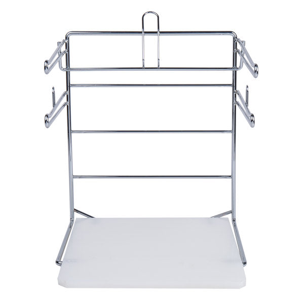 Designed to hold 1/6 and 1/5 size t-shirt bags, this chrome t-shirt bag rack / stand is perfect for bagging items in your grocery, retail, or convenience store! It’s also perfect in restaurants for bagging take-out food or a customer’s leftovers. Opening plastic bags can be a hassle as the plastic can stick together. This stand makes it a breeze to open bags which will keep your restaurant or store efficient and timely.