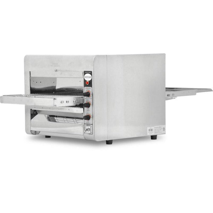 This conveyor oven is designed to provide consistent heat with infrared heaters. Equipped with a variable speed control and adjustable top and bottom heat controls. Durably built in a stainless steel body made to handle tough tasks, this conveyor oven is an excellent addition to your kitchen, diner, cafe, and food service!