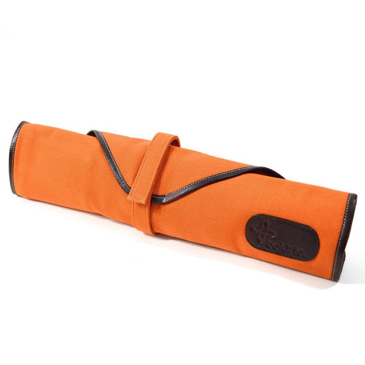 Roll-Up Bag Natural Cotton Canvas 6 Pockets for Knives, Cutlery and Utensils Water Buffalo Leather Details Hook & Loop Interior Strap Dimensi...