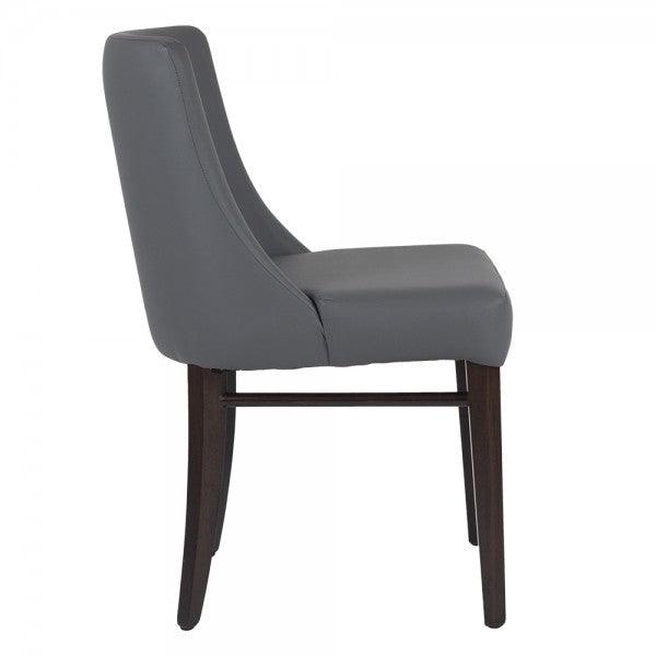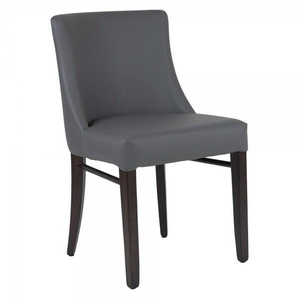 Add an elegant touch to your restaurant with this Nella Leon Grey Vinyl Restaurant Chair. The chair's grey vinyl seat combines with a curved solid backrest to not only provide excellent support, but also add a distinct aesthetic appeal to any restaurant, bar, or bistro.