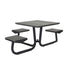 The Marco 36" Square Cluster Table offers a compact and stylish dining solution, perfect for smaller outdoor spaces while comfortably seating four people (ADA Compliant). Constructed with a durable square tubular aluminum powder-coated frame and low-maintenance Polywood slatted top and seats, this table combines strength with a classic aesthetic. Designed with an integrated umbrella hole, it provides the option for convenient shade, making it ideal for enjoying meals outdoors in comfort.