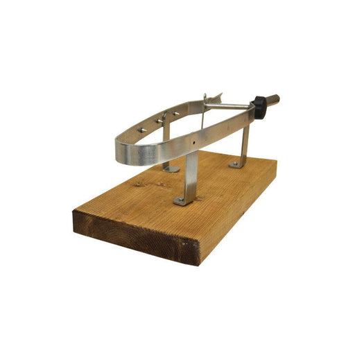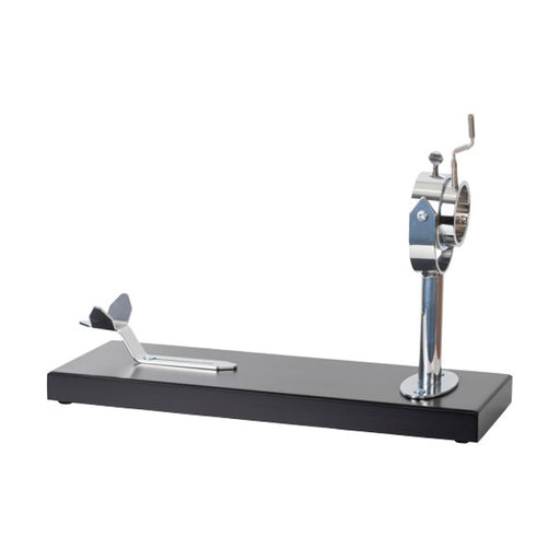 Crafted from durable stainless steel and hardwood, this holder ensures your prosciutto stays firmly in place while cutting, allowing you to achieve thin, even slices with ease. Its angled, adjustable design enhances cutting control and display presentation, making it ideal for both back-of-house prep and front-of-house serving stations.