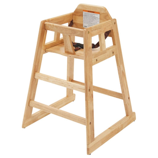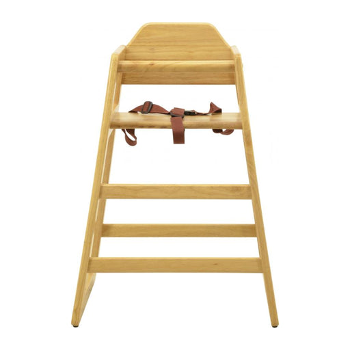 The Nella commercial high chair with a natural finish keeps your young guests safe and secure at your foodservice establishment. Nella's wooden high chairs are constructed with rounded corners, a Nylon safety harness, and a wide base for stability and security. This high chair is great for any type of family-friendly restaurant, cafeterias, and diners. For added convenience, Nella's wooden high chairs are stackable.