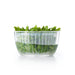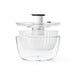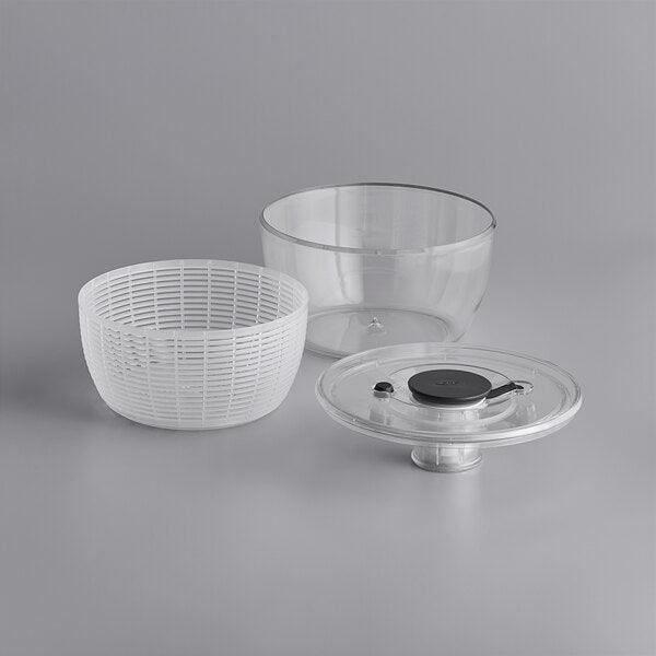 Keep your salad greens crisp and clean with a spin in this OXO 1351680 Good Grips 2 qt. white plastic salad spinner / dryer! Its 2 qt. spinner basket is the optimal size for entrée sized and shared salads, with a 6 qt. plastic bowl base that's perfect for tossing toppings and dressings before serving. A non-skid bottom holds the salad spinner in place, keeping it stable and secure for easy use in your establishment.