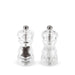 The Peugeot Nancy collection replicates the silhouette of the emblematic Paris model in an acrylic finish. The total transparency provides a glimpse of the spices that it holds and stimulates your senses. The Nancy 12 cm salt and pepper mill duo is an essential of the table and the kitchen. The adjustment knob in shiny metal, placed at the top of these two mills, is used to adjust salt and pepper coarseness to your preference. From the finest grinding to the coarsest, you can season the dishes that you prepare, according to your preferences.