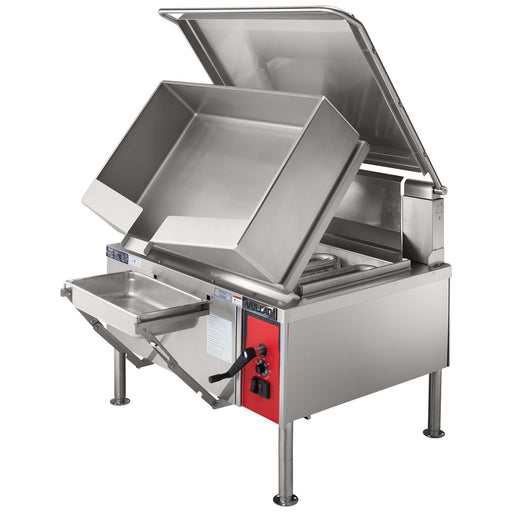A core temperature probe has 6 measuring points and can be inserted into the food so the perfect doneness is achieved every time. It also has automatic error correction just in case there is an incorrect reading. Automatic water filling saves you the time of manually having to fill the skillet and is accurate to the exact quart. When it comes time to clean out the skillet, an integrated hand shower makes the task a breeze. It has both spray and jet modes, and includes automatic retraction so it is out of the way when not in use. An all stainless steel interior and exterior construction make this unit easy to clean and corrosion resistant. An electrically adjustable stand has 8" of variance, which allows you to place the unit at an optimal working height. A 208/240V electrical connection is required for operation of this unit