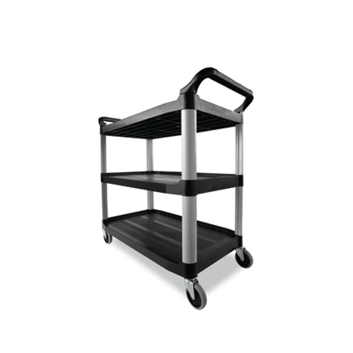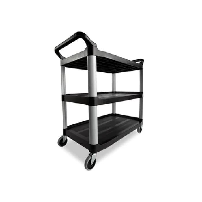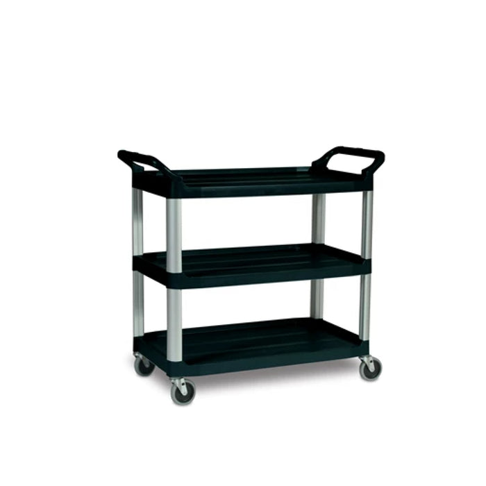 Convenience and durability are at the forefront with Rubbermaid’s FG409100BLA Xtra three shelf utility cart. Built for transporting large quantities of food, dishes, and other products, these carts are a necessity for all front- and back-of-house operations.