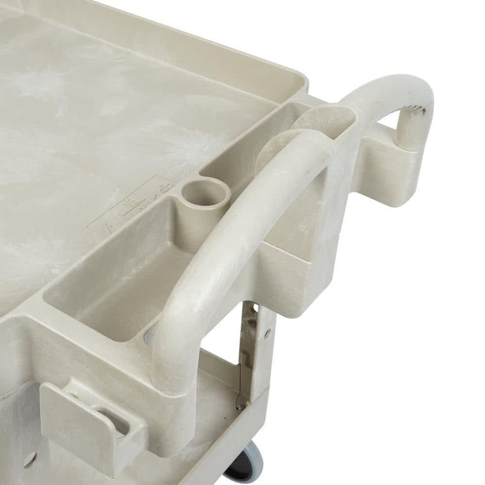 The Rubbermaid FG452089BEIG utility cart also has an ergonomic handle that provides workers with variable grip heights that improve control and safety.