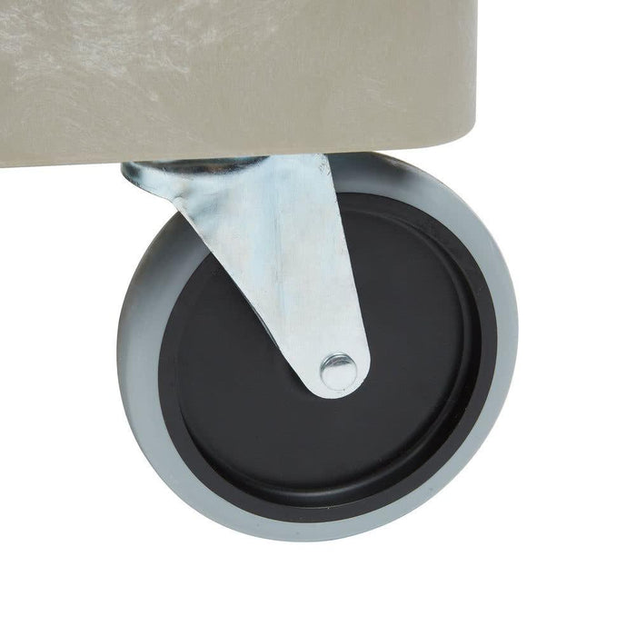 The sturdy structural foam this cart is made from ensures a long life by preventing rust, dents, and chips. Its 4” non-marking swivel casters and curved corners will protect your floors and walls from scuffs and other damage.