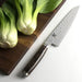 The lightweight knife has a slightly narrower blade than the traditional chef's knife, but still allows plenty of knuckle room when cutting on a board.