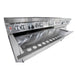 The non-clog burners are engineered for a lifetime of heavy-duty use, significantly reducing the time and effort required for cleaning. The exterior construction features a stainless steel front and sides with a 4" stainless steel front rail, ensuring lasting structural integrity and a professional appearance in any kitchen setting.