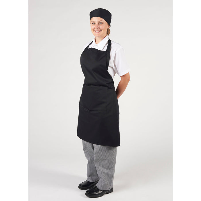 The Spirito BG21001 34" Black Bib Apron is a great choice for any type of business. Crafted from high-quality, durable 65% polyester and 35% cotton twill fabric, this apron provides protection and coverage for a range of tasks. With an adjustable neck strap and two roomy pockets, you'll have plenty of storage space for your essentials. The extra-long length ensures maximum coverage and protection. Its sleek black color is timeless and professional, perfect for any environment.