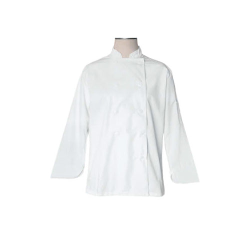 Made from blend fabric of poly and cotton, this traditional chef coat is highly durable, classic and versatile. It is designed with mandarin style collar and double-breasted front that provide timeless appeal. This unisex apparel is completely safe for industrial laundry machines.