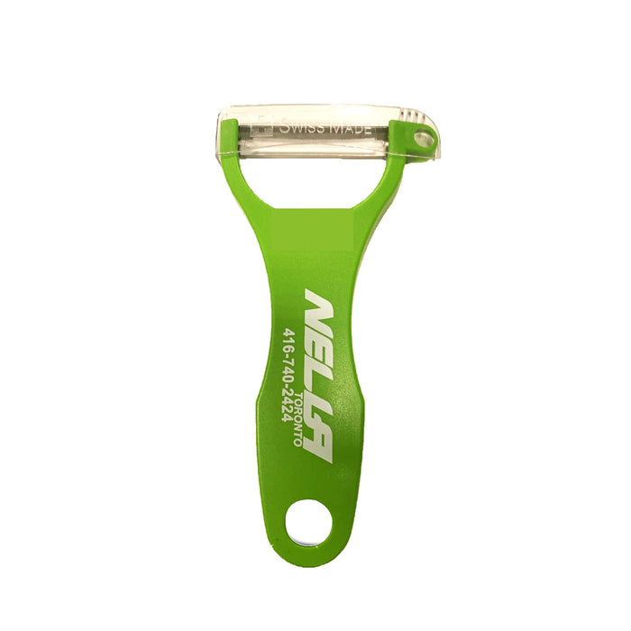 This Swissmar 00441GNB 2.75" Green Scalpel Blade Classic Peeler only require a light touch to peel. Use the scalpel blade to peel softer fruits and vegetables, such as tomatoes and zucchini.