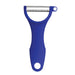 This Swissmar 00442BL 2.75" Blue Serrated Blade Classic Peeler is precisely serrated and only require a light touch to peel. Use the serrated blade to peel softer fruits and vegetables, such as tomatoes and zucchini.