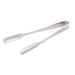 This standard multi-purpose serving tongs are perfect for serving pastas, tossing salads, sautéing vegetables and more. Made of stainless steel with a mirror-polished finish. Ensures durability and longevity through extensive operation. Designed with handles for easy management and teethed ends for easy gripping when in use. Measures 6-1/2-inch length by 5/8-inch height by 1-1/4-inch width.