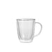 Trudeau's double wall cups create a layer of insulation. They are condensation free so need for a coaster. Cool to the touch. Made of double-wall borosilicate glass which is highly resistant to breakage. Ideal for hot or cold beverages, these double-wall coffee glass mugs maintain the temperature of your drinks. The double wall ensures that the mug doesn't get too hot with hot beverages, and prevents condensation for cold beverages. This classic mug set has a handle for extra comfort.