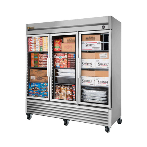 True T-72FG-HC~FGD01 78" Reach In 3 Glass Door Freezer is designed with enduring quality that protects your long term investment. Designed using the highest quality materials and components to provide the user with colder product temperatures, lower utility costs, exceptional food safety and the best value in today’s food service marketplace.