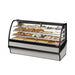 This True TDM-DC-77-GE/GE-S-S 77" Curved Glass / Glass End Dry Case Display Merchandiser combines efficient, high volume merchandising with an elegant curved glass front for sophisticated presentation of high end desserts and pastries.