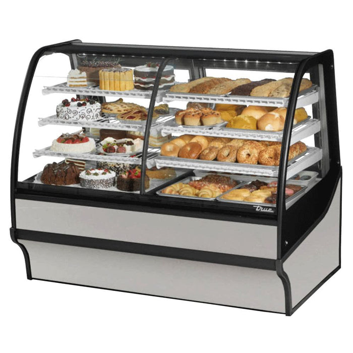 True TDM-DZ-59-GE/GE 59" Stainless Steel Curved Glass Dual Zone Refrigerated Bakery Display Case With Stainless Steel Interior
