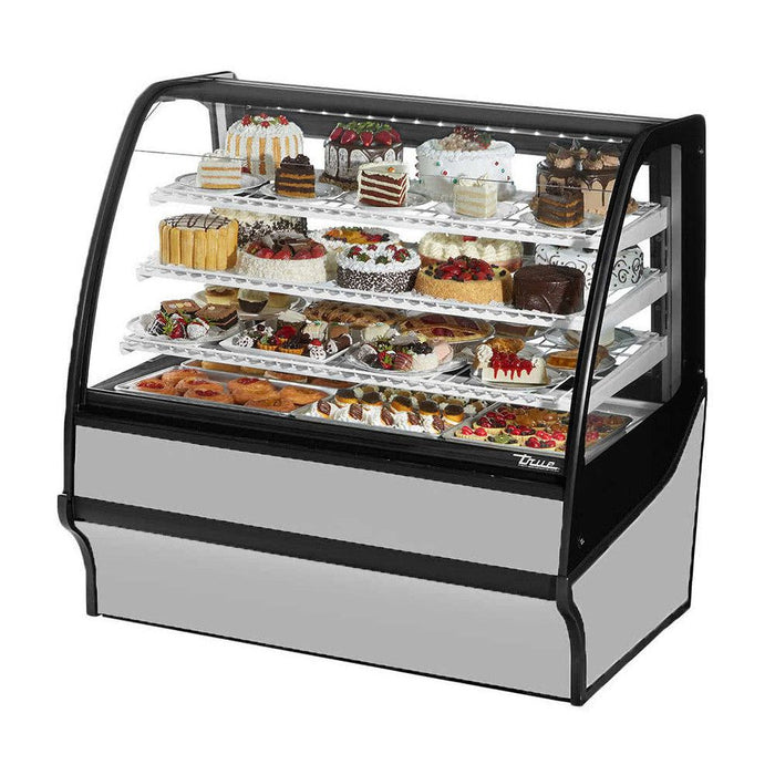 True TDM-R-48-GE/GE-S-W 48" Stainless Steel Curved Glass Refrigerated Bakery Display Case With White Interior