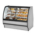 The True TGM-DZ-59-SC/SC-S-W 59" Stainless Steel Refrigerated & Dry Merchandising Display Case with White Interior combines efficient, high volume merchandising and exceptional refrigeration with an elegant curved glass front for sophisticated presentation of high end desserts and pastries.
