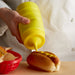Made of durable yet flexible polyethylene, this bottle is easy to squeeze for fast application of mustard, signature sauces, dressings, or any of your favorite condiments. Thanks to the yellow color, the contents of the bottle are easily identifiable as mustard, or any other yellow condiment.