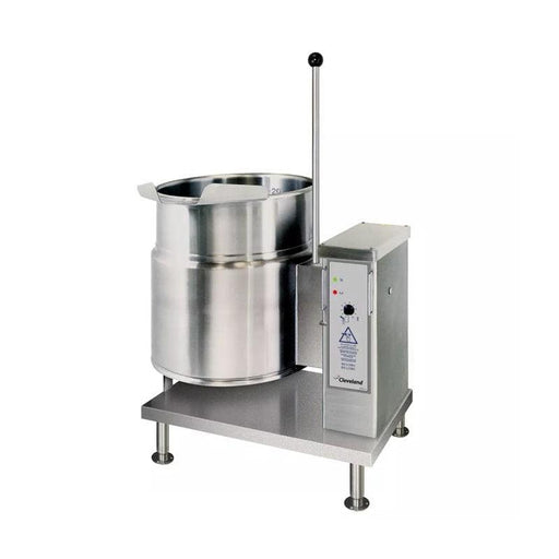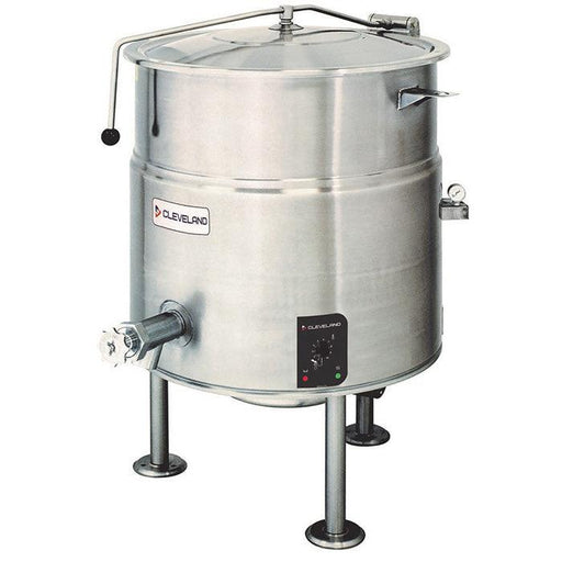 The kettle comes equipped with a spring assist hinged cover with a condensate ring to prevent injury from hot condensation when opening the lid. Three sturdy tubular stainless steel legs put the unit at a working level and feature flanged feet that can be easily bolted to the floor for added security.